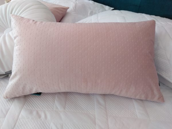COJIN TERCIOPELO MATE ROSA CLARO, 30X50, 100% POLIESTER, CON RELLENO DE FIBRA.