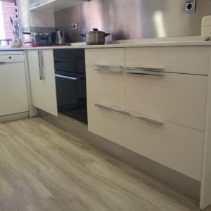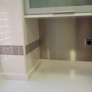 A veces los cuerpos de los muebles que tiene el cliente estan en buen estado y el cliente lo que quiere es modificar frentes, costados,cambiar tiradores…. En algunas ocasiones podemos modificar la distribución de la cocina, cambiar la encimera o tapar azulejos que ya nos nos gustan con frentes de silestone o como en este caso con toda una zona de planchas de acero inox. El resultado es tan bueno como el de una nueva cocina.