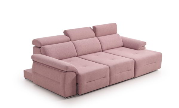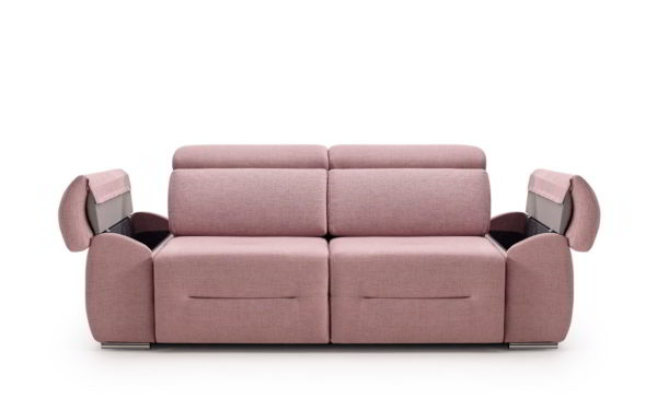 El sofá deslizante Milano, con ruedas al suelo, tiene un diseño elegante y es muy funcional. Los cabezales multiposición y su sentada extra confort aportan gran comodidad. Sus brazos curvos con cojín incorporado guardan un arcón de serie en su interior y también se pueden deslizar hacia adelante para acompañar la postura cuando sacamos los asientos; esto nos permite tumbarnos transversalmente y estar tan cómodos como en una cama.